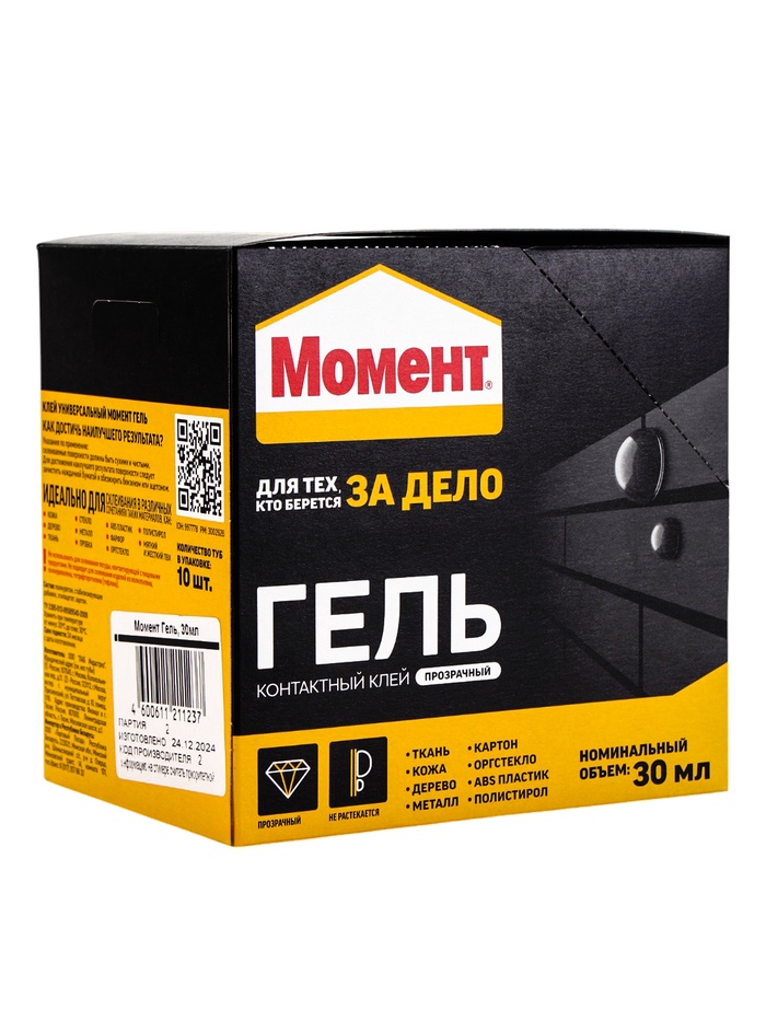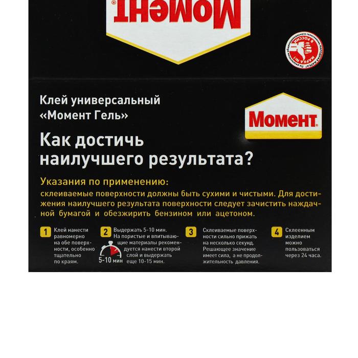 Клей Момент Гель является водостойким и предназначен для склеивания в различных сочетаниях дерева, металла, кожи, резины, войлока, декоративно - слоистых пластиков, стекла, керамики, фарфора. Клеевой шов получается очень надежным. Нельзя использовать для посуды, контактирующей с пищей. Необходимо хранить при температуре о -20 С до +30 С. Если клей замерз, то свои свойства он восстановит при комнатной температуре.