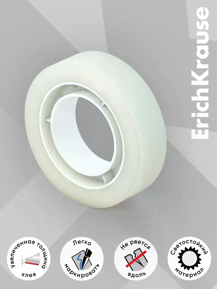 Прозрачная клейкая лента имеет антибликовую матовую поверхностью с возможностью нанесения на нее надписи. Незаметна на ксерокопиях, банкнотах, фотографиях. Увеличенная толщина клеевого слоя обеспечивает высокую клеящую способность ленты. Изготовлена из высококачественной биаксиально-ориентированной полипропиленовой пленки повышенной прочности, устойчива к продольному разрыву. Светостойкая, не желтеет со временем.