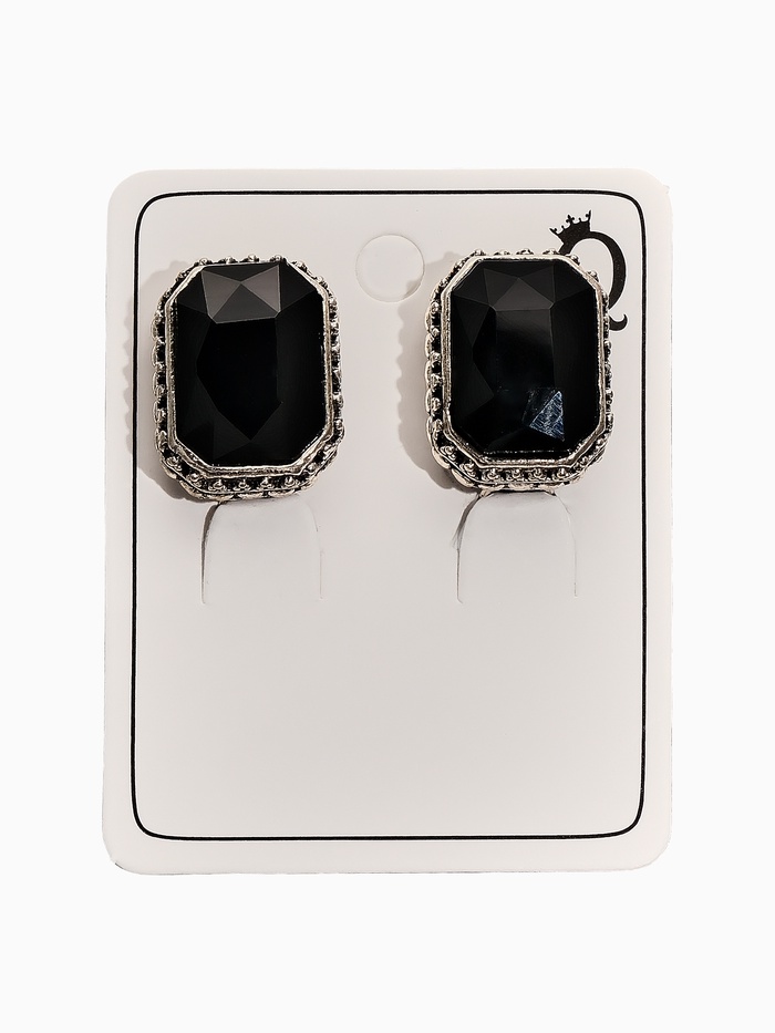 Клипсы "Винтаж" прямоугольник грань, цвет чёрный в чернёном серебре