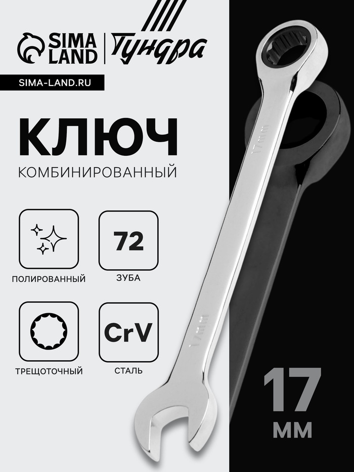 Ключ комбинированный трещоточный ТУНДРА предназначен для монтажных и демонтажных работ с резьбовым соединением.