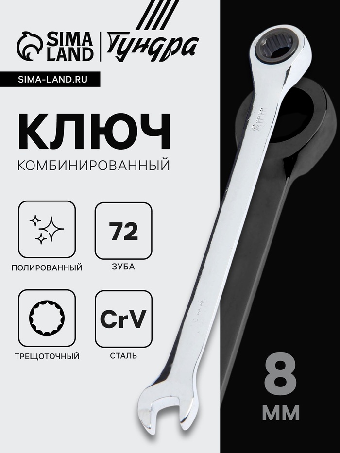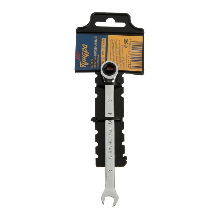 Ключ комбинированный трещоточный ТУНДРА, CrV, полированный, 72 зуба, 8 мм