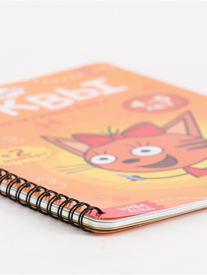 - Яркие иллюстрации с любимыми персонажами из мультфильма «Три кота» поддерживают интерес ребёнка к обучению.