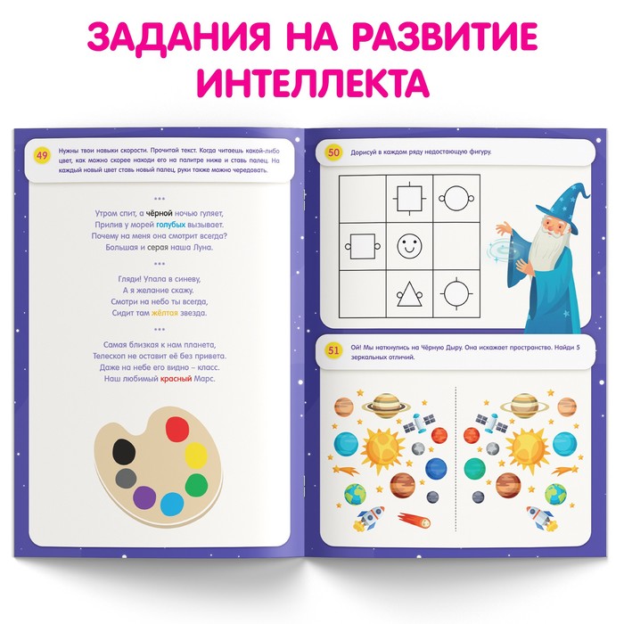 Эта книжка специально создана для юных любознательных исследователей! Ребёнка ждут звёздные, космические и даже галактические приключения. Упражняйтесь, играйте, творите и проводите время полезно с «Космическим нейротренажёром».