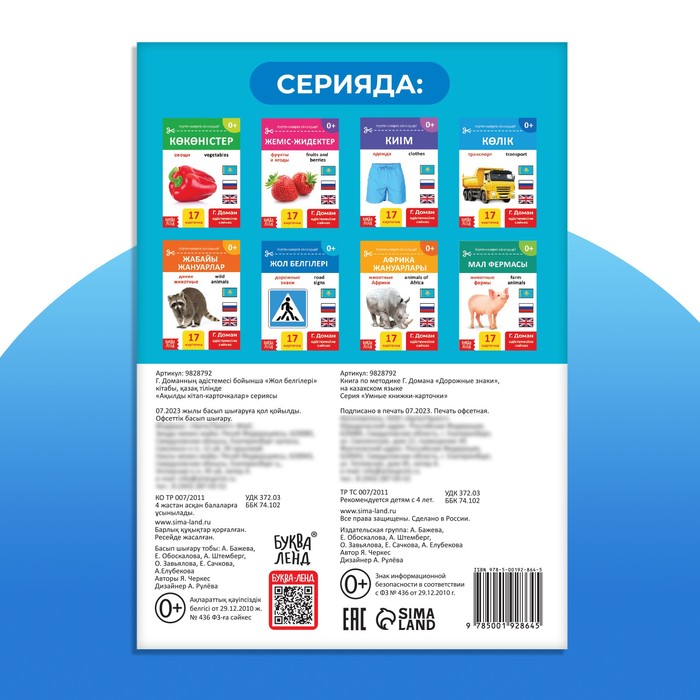 - Книга содержит 17 карточек с изображениями дорожных знаков.