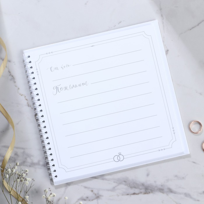Гостевая книга - прекрасный атрибут свадебного вечера. Записывать пожелания в эту книгу понравится всем гостям. А вам понравится то, что через много много лет вы сможете окунуться еще раз в атмосферу вашего праздника. Идеально для свадьбы в стиле бохо, рустик, минимализм, прованс. Книга сделана из преплётного картона 1,25 мм с глянцевой ламинацией. В книге 40 односторонних листа размером 20х20 см плотностью 80 гр., первый лист для молодоженов с указанием даты торжества и имён, последующие 39 листов для искренних пожеланий счастливой семейной жизни жениху и невесте.