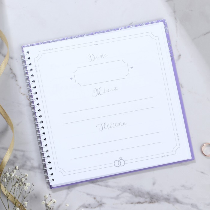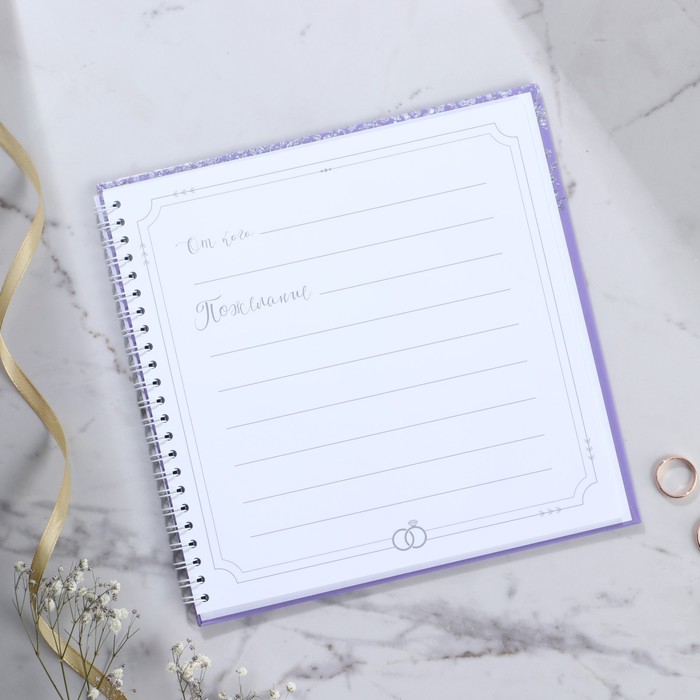 Гостевая книга - прекрасный атрибут свадебного вечера. Записывать пожелания в эту книгу понравится всем гостям. А вам понравится то, что через много много лет вы сможете окунуться еще раз в атмосферу вашего праздника. Идеально для свадьбы в стиле бохо, рустик, минимализм, прованс. Книга сделана из преплётного картона 1,25 мм с глянцевой ламинацией. В книге 40 односторонних листа размером 20х20 см плотностью 80 гр., первый лист для молодоженов с указанием даты торжества и имён, последующие 39 листов для искренних пожеланий счастливой семейной жизни жениху и невесте.