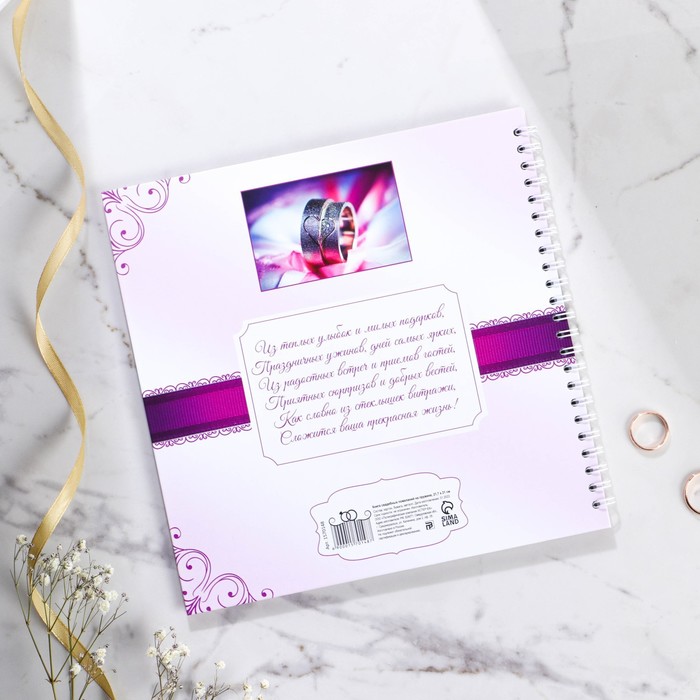 Гостевая книга - прекрасный атрибут свадебного вечера. Записывать пожелания в эту книгу понравится всем гостям. А вам понравится то, что через много много лет вы сможете окунуться еще раз в атмосферу вашего праздника. Идеально для свадьбы в стиле бохо, рустик, минимализм, прованс. Книга сделана из преплётного картона 1,25 мм с глянцевой ламинацией. В книге 40 односторонних листа размером 21х21 см плотностью 80 гр., первый лист для молодоженов с указанием даты торжества и имён, последующие 39 листов для искренних пожеланий счастливой семейной жизни жениху и невесте.