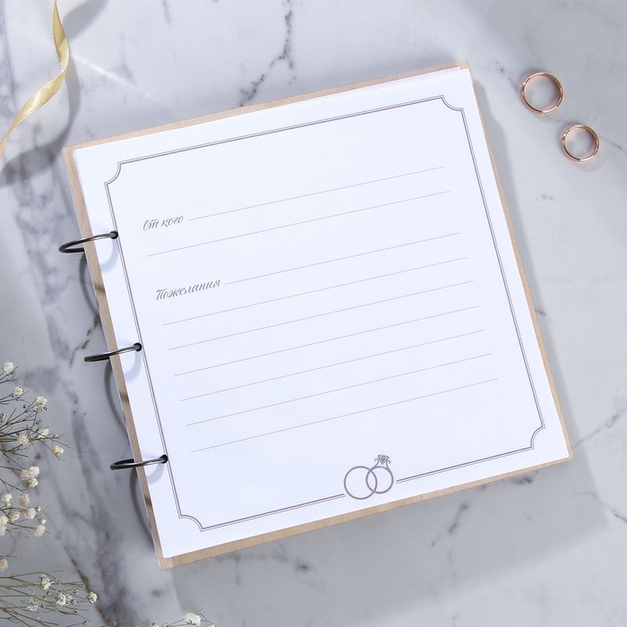 Гостевая книга с деревянной обложкой на кольцах. Записывать пожелания в эту книгу понравится всем гостям. А вам понравится то, что через много много лет вы сможете окунуться еще раз в атмосферу вашего праздника. Идеально для свадьбы в стиле бохо, рустик, минимализм, прованс. В книге 42 односторонних листа размером 21х21 см плотностью 80 гр., первый лист титульный, второй лист для молодоженов с указанием даты торжества и имён, последующие 40 листов для искренних пожеланий счастливой семейной жизни жениху и невесте.