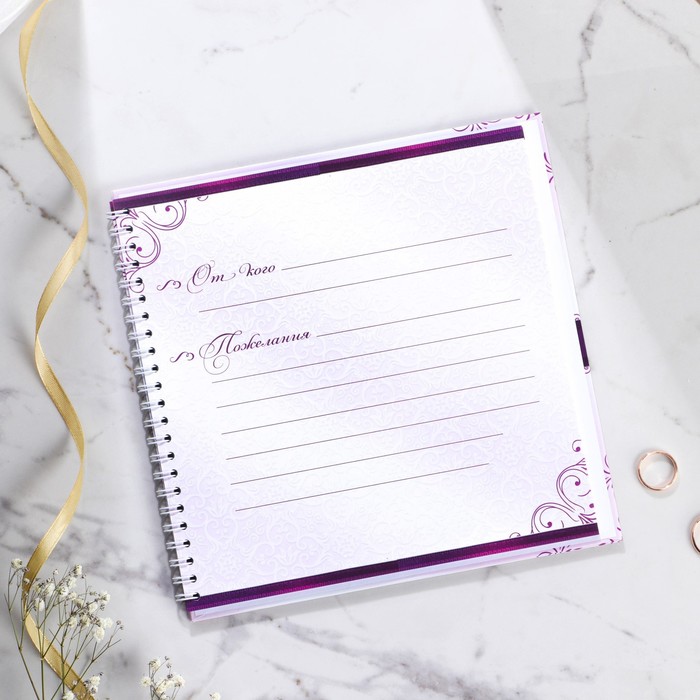 Гостевая книга - прекрасный атрибут свадебного вечера. Записывать пожелания в эту книгу понравится всем гостям. А вам понравится то, что через много много лет вы сможете окунуться еще раз в атмосферу вашего праздника. Идеально для свадьбы в стиле бохо, рустик, минимализм, прованс. Книга сделана из преплётного картона 1,25 мм с глянцевой ламинацией. В книге 40 односторонних листа размером 20х20 см плотностью 80 гр., первый лист для молодоженов с указанием даты торжества и имён, последующие 39 листов для искренних пожеланий счастливой семейной жизни жениху и невесте.