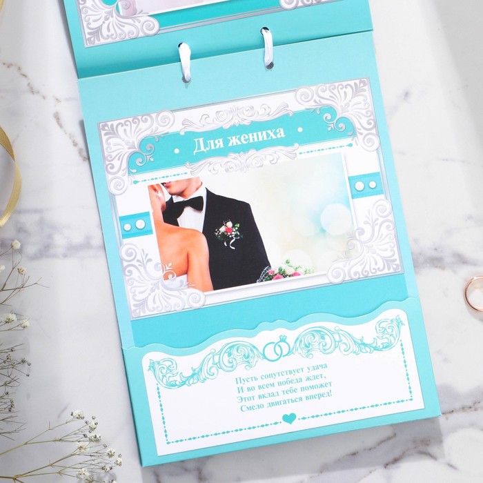 Оригинальная идея для денежного подарка. В этой яркой открытке-сберкнижке - 6 страниц с 5 встроенными карманами для денег, куда необходимо положить выбранную вами сумму. Страницы украшают добрые советы, на что можно потратить денежный подарок.Такой необычный презент позволяет создать целую историю и подарить предвкушение удивительных и чудесных моментов, которые ждут молодоженов впереди. Книга идеальна в качестве как коллективного, так и индивидуального поздравления. В коллекции представлены сберегательные книжки для разных торжественных событий: свадьба, юбилей, день рождения.