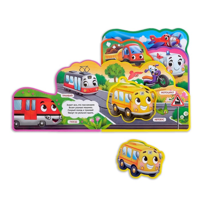 - Каждая страница содержит красочные изображения различных видов транспорта, расширяя кругозор ребёнка.