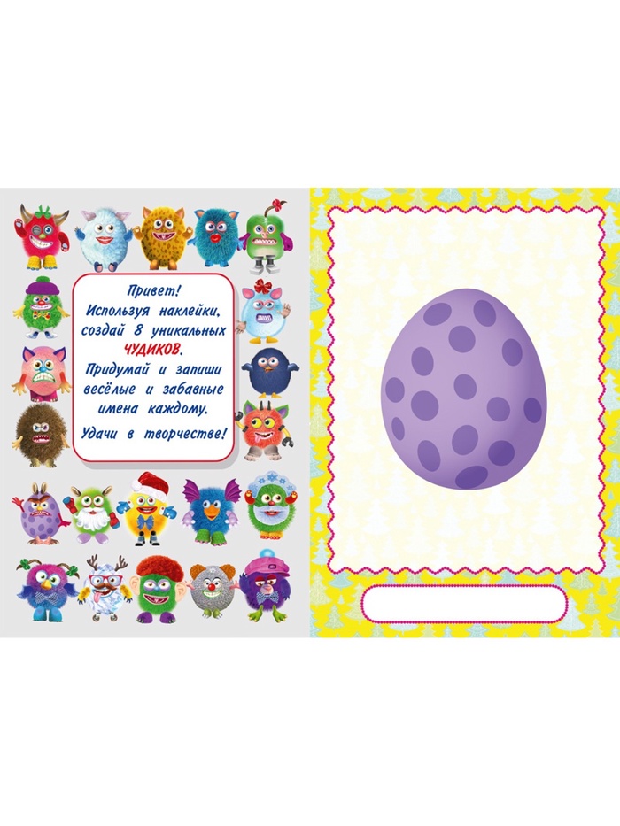 «Ёлки-Палкин: Создай своего чудика» — это не просто книга, а возможность для ребёнка проявить фантазию и создать что-то уникальное. Каждый чудик может быть смешным, страшным или добрым — все зависит от воображения. Яркие наклейки с аксессуарами, одеждой и эмоциями превращают процесс в увлекательную игру. Это отличный способ провести время с друзьями или семьей, создавая истории и придумывая имена своим персонажам.