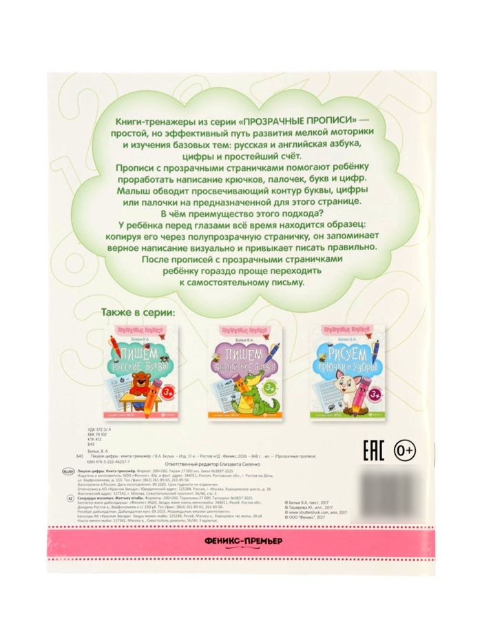 Книга-тренажер "Пишем цифры", Белых В.А., 2025
