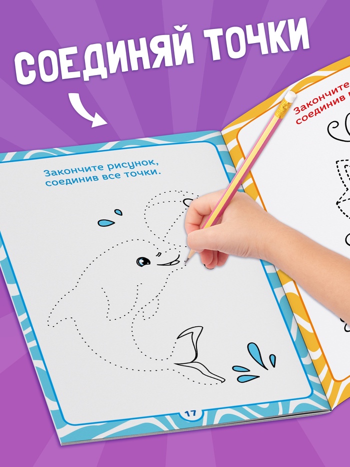 - «Соедини точки» — готовьте карандаши, соединяйте точки, и у вас получится цельная картинка, которую можно раскрасить. С каждой страницей сложность заданий повышается!