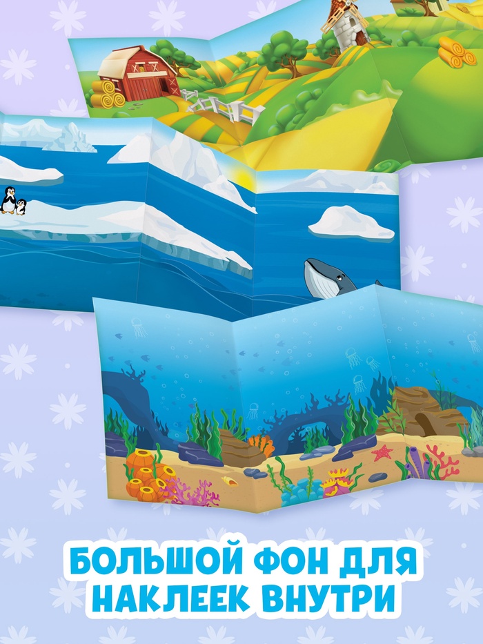 Набор многоразовых детских наклеек «Изучаем животных» включает 4 издания разной тематики: «Кто живёт в море», «Кто живёт на полюсе», «Моя большая ферма» и «Кто живёт в лесу».