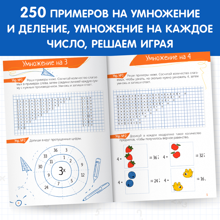 В набор входит сборник правил и задачек и тетрадь-тренажёр. Пособия помогут школьнику запомнить все примеры в форме увлекательной игры, узнать секреты умножения и закрепить знания.