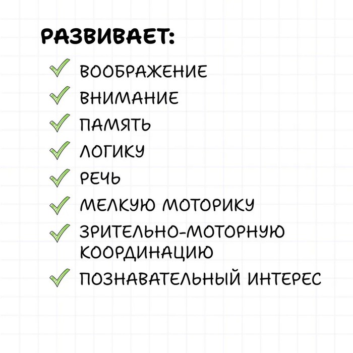 - Развивает мелкую моторику, воображение и социальные навыки.