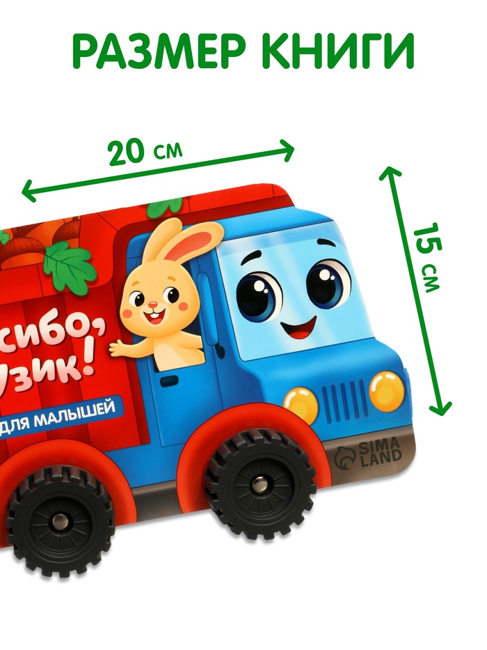 Книжка-игрушка с колёсами "Спасибо, Грузик", 10 стр.