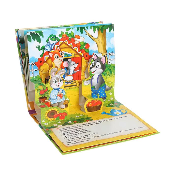 Этот формат книги помогает ребёнку не только слушать сказку, но и взаимодействовать с сюжетом. Открывая каждую страницу, малыш видит, как герои сказки буквально «выходят» из книги. Это стимулирует зрительное восприятие, развивает мелкую моторику и пробуждает любопытство.