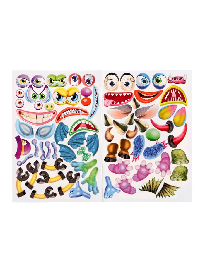- 2 страницы с красочными наклейками, которые помогут создать уникальных монстриков на готовых шаблонах.