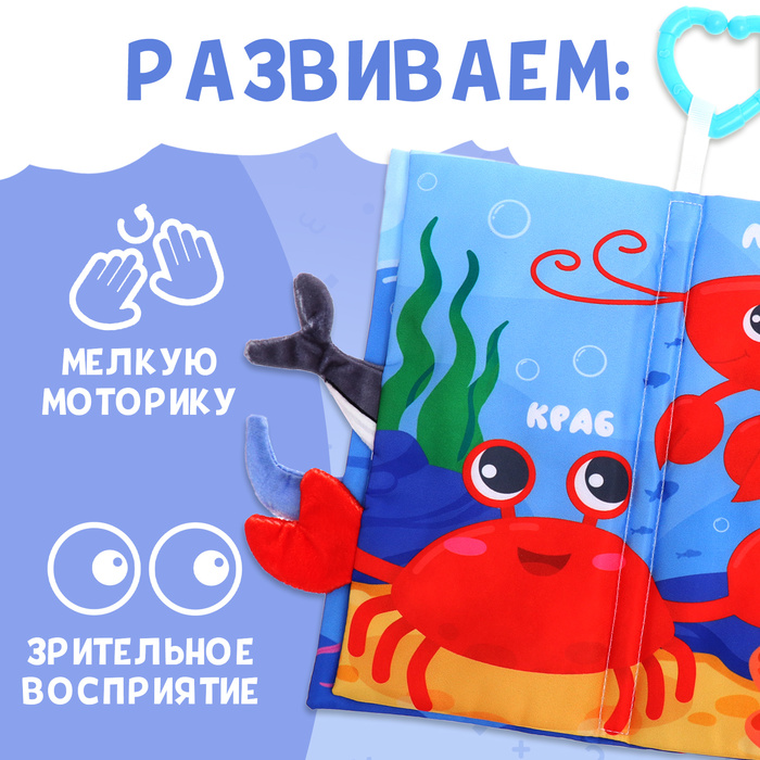 В книжке есть хвостики разных обитателей морских глубин. Малышу будет интересно их трогать и угадывать, кому они принадлежат.