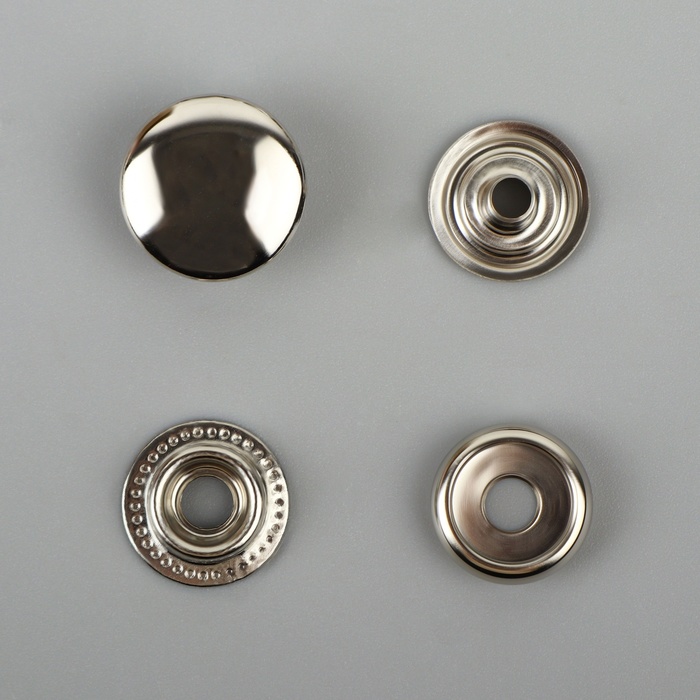 Кнопки прочные и износостойкие, устанавливаются при помощи пресса, крепление незаметно на одежде.