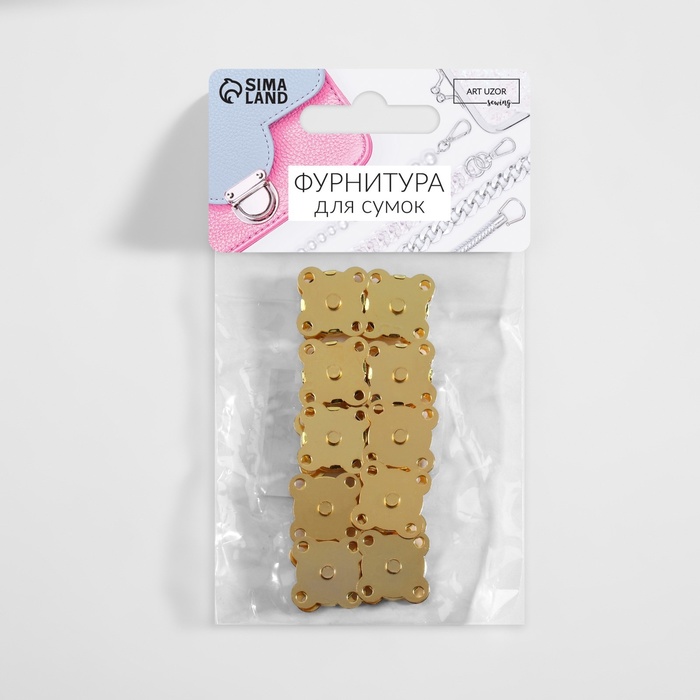 Кнопки магнитные, пришивные, d=14 мм, 10 шт., цвет золотой