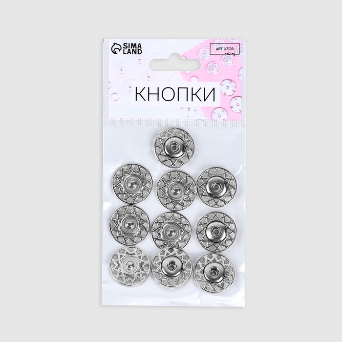 В наборе пять кнопок, d = 20 мм, цвет серебряный.