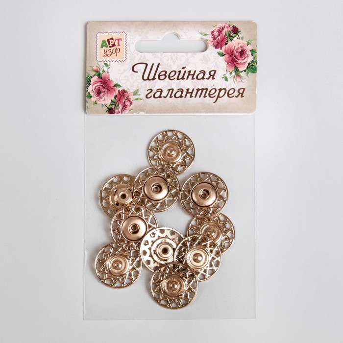 В наборе пять кнопок, d = 21 мм, цвет золотой.