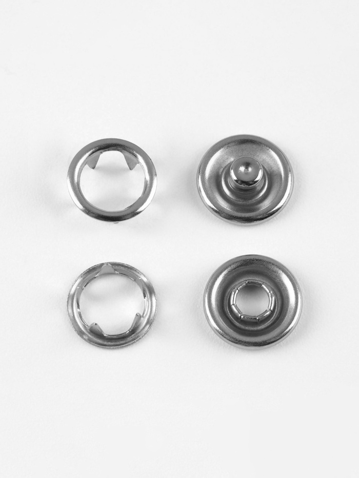 Серебристые открытые рубашечные кнопки — универсальный вариант для замены фурнитуры на одежде. Гладкие, прочные и незаметные в носке, они подходят для тонких тканей и классических рубашек. Благодаря небольшому диаметру (11 мм) крепление остаётся аккуратным, а стальное покрытие исключает коррозию.