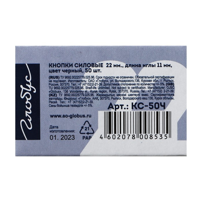 Кнопки силовые GLOBUS, 50 шт., чёрные
