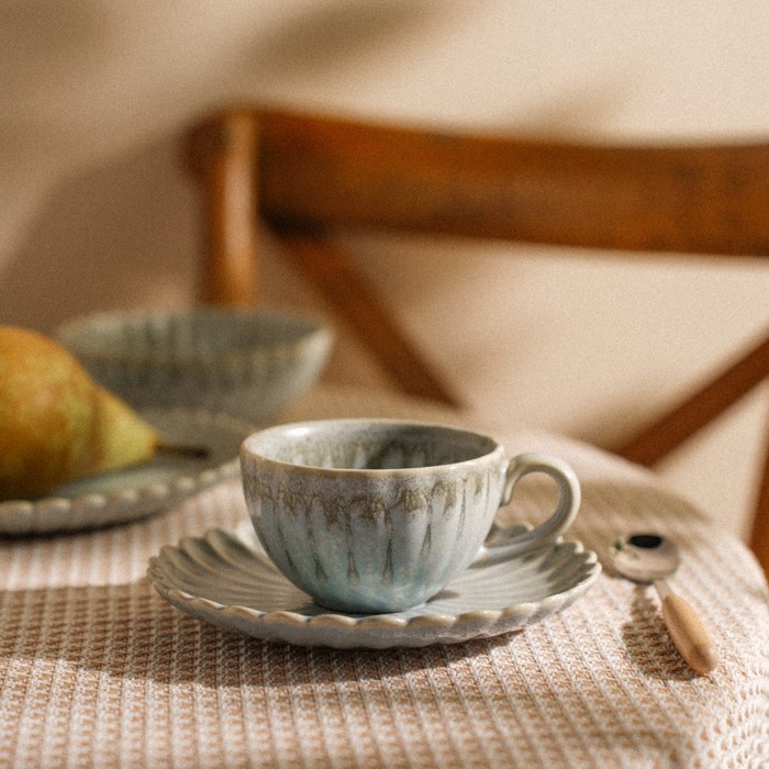 Кофейная пара фарфоровая SL Home «Эхо Крита», 2 предмета: чашка 180 мл, блюдце d=15.5 см, цвет голубой