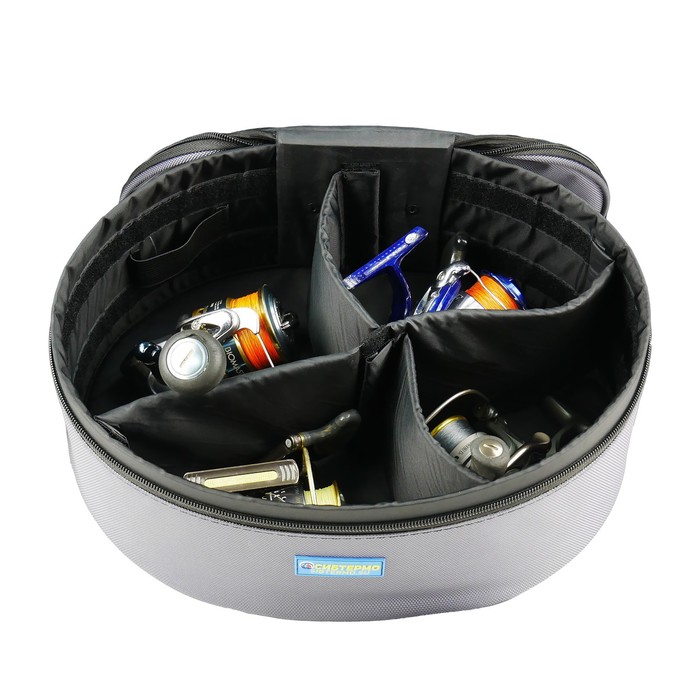 Жесткий кофр для хранения катушек на 4 отсека. Имеет пластмассовый обтянутый тканью каркас. Жёсткие перегородки не позволяют прогнуться крышке. В этом кейсе сохранность ваших катушек обеспечена. Имеется ручка для переноски.