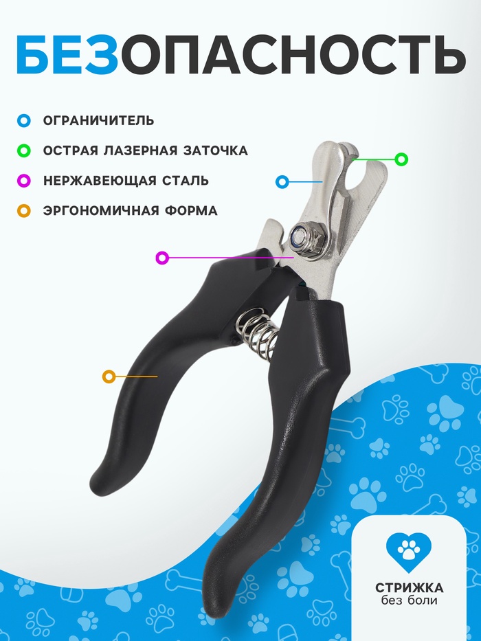 - Ограничитель толщины: Блокирует чрезмерное углубление лезвия. Защищает от случайного повреждения живого, особенно у светлых когтей. Дает уверенность, даже если питомец двигается.