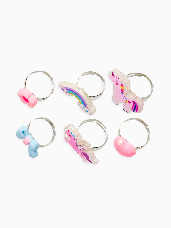 Обучайте и развивайте малышей с помощью ярких аксессуаров! Набор детских колец «Выбражулька. Единорог» из 6 штук – весёлые украшения для маленьких девочек – это комплект ярких и безопасных детских колец с милыми фигурками. Подходит для ежедневных игр и праздничных мероприятий, помогая малышам учиться выразительно подбирать образ и развивать мелкую моторику.