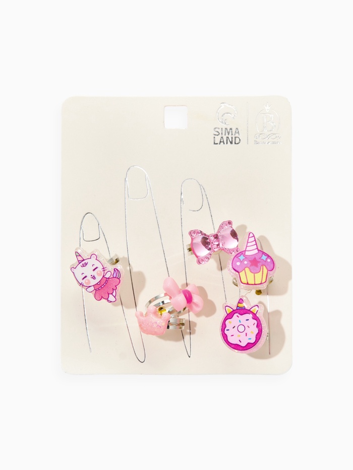 ¶- Яркий дизайн и тематика: В набор входят кольца с изображениями котика и единорога, выполненные в розовом цвете. Такой ассортимент способствует развитию у детей интереса к сказкам и животным.