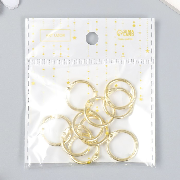 Кольца для творчества (для фотоальбомов) "Золото" внутр. d= 1,5 см внешн. d=2 см набор 10 шт