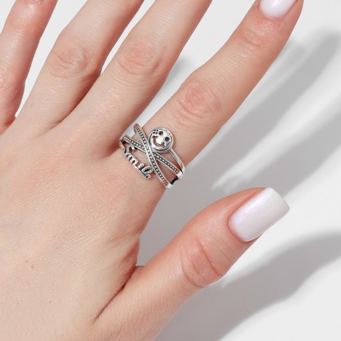 Оригинальное кольцо с переплетениями и стилизованным изображением смайлика в чернёном серебре станет акцентом вашего образа, который притягивает взгляды и поднимает настроение. Универсальный дизайн безразмерного украшения позволяет легко адаптировать его под любой палец, обеспечивая комфорт и удобство в носке.