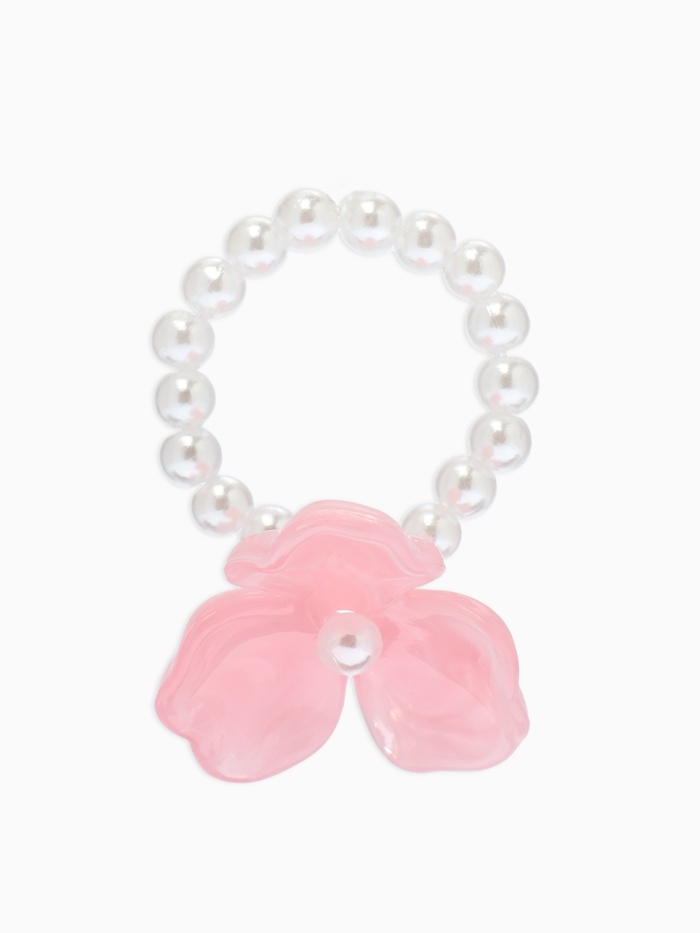 Кольцо "Цветок" трёхлистник жемчужный, цвет розовый безразмерное на резинке