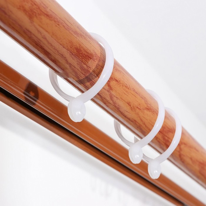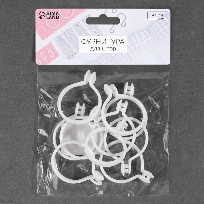 Удобная фурнитура для крепления штор — практичное решение для дома и офиса. Кольца подходят для труб диаметром до 34 мм, легко монтируются на карниз без дополнительных инструментов. Изготовлены из прочного пластика белого цвета, устойчивы к повреждениям и выцветанию.