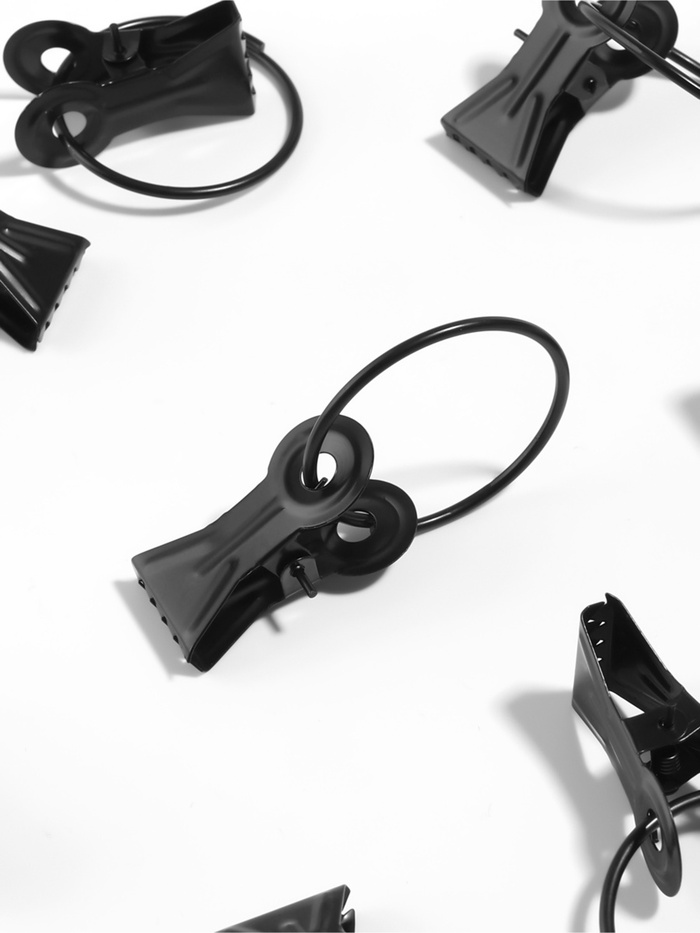 Элегантные карнизные кольца с зажимами станут незаменимыми в оформлении вашего интерьера. Эти стильные кольца, представленные в черном цвете, добавят современную нотку в любой дизайн. Прочные и надежные, они изготовлены из металла и имеют диаметр 32 и 36 мм, что делает их универсальными для большинства карнизов.