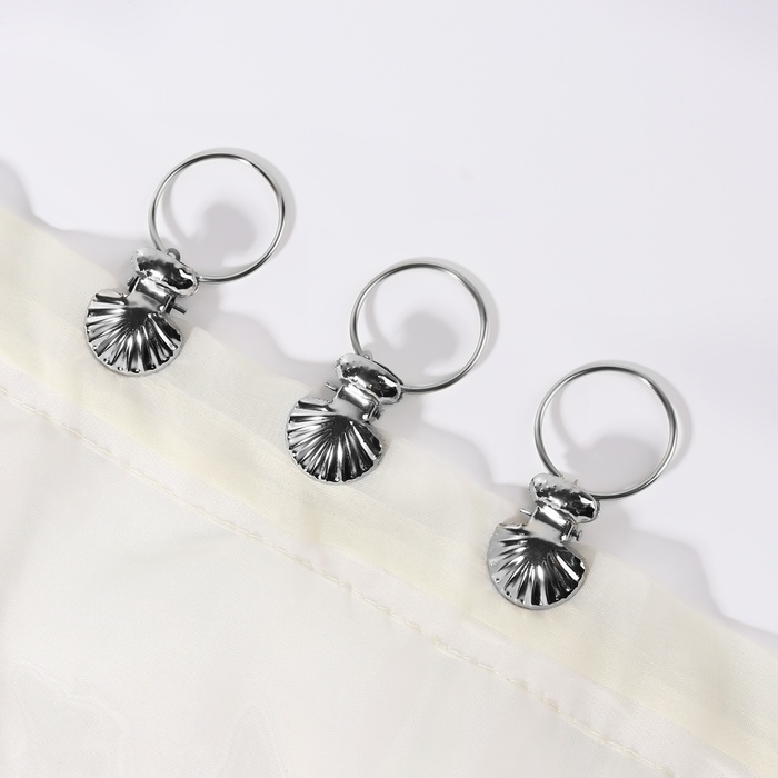 Чтобы надёжно прикрепить шторы, воспользуйтесь кольцом с зажимом. Конструкция прочно сцепит ткань, но не повредит её, выдержит даже тяжёлый текстиль и останется незаметным. Поместите изделие на карниз, и шторы будут плавно скользить по балке.