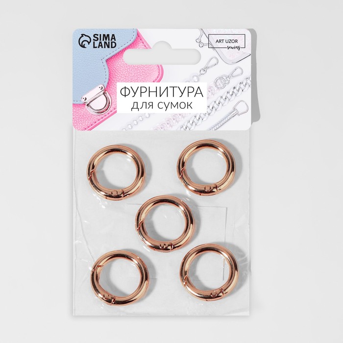 Золотистые кольца-карабины диаметром 16/24 мм внесут изысканность в ваш комплект для ключей или брелоков. Идеальный выбор для тех, кто ценит стиль и надежность в повседневных аксессуарах. Набор из 5 штук позволяет использовать их по вашему усмотрению, создавая новые связки или обновляя текущие.