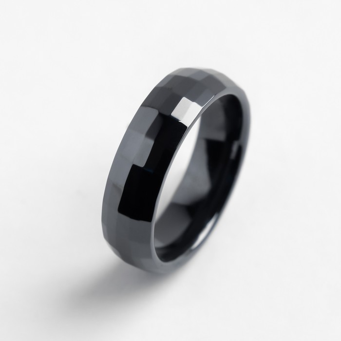 Кольцо керамика «Минимал» огранка прямоугольник мелкий, 6 мм, чёрное, 18 размер