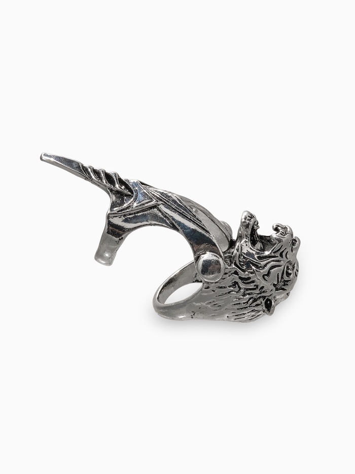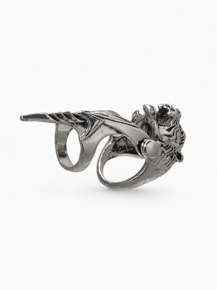 Дизайн кольца, напоминающий коготь тигра, привлекает внимание и вызывает восхищение. Чернёное серебро придаёт ему брутальность, а отсутствие вставок делает его универсальным аксессуаром для любого повода — будь то вечерняя встреча или повседневный выход.