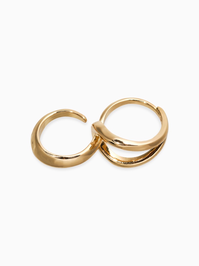 Модель выполнена из высококачественного металла с насыщенным золотым цветом фурнитуры, что придает ей благородство и универсальность. Исключительно простая, но выразительная форма делает это кольцо отличным дополнением к любым нарядам — от повседневных до деловых или вечерних.