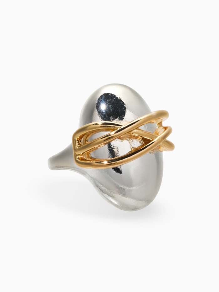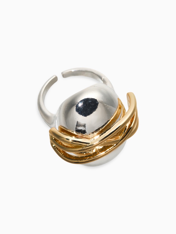 Обладание этим украшением позволяет подчеркнуть индивидуальность без лишних слов. Игровая игра металлов — серебро, подчеркивающее чистоту и свежесть, и золото, придающее роскошный акцент, — делает кольцо универсальным аксессуаром, который легко впишется как в деловой, так и в повседневный стиль. Минимализм в сочетании с богатой символикой сетки создает эффект современного шика и гармонии.