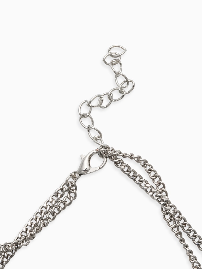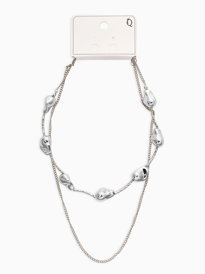 Колье "Борокко", цепь, 2 яруса, цвет серебро