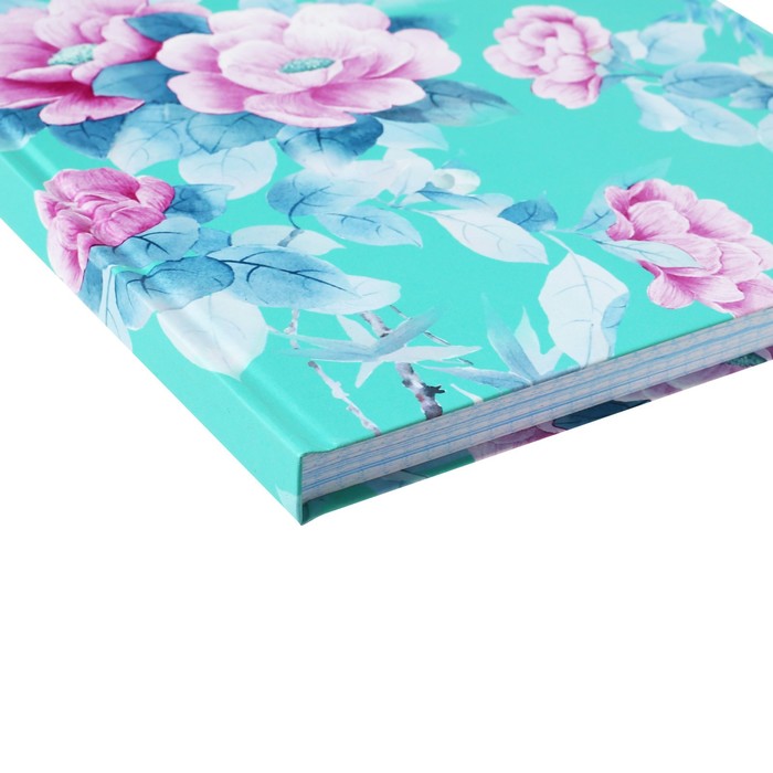Колледж-тетрадь в твердой обложке 7БЦ, А4, 160 листов, Цветы на мятном фоне, блок в клетку, матовая ламинация, ВЫБОРОЧНЫЙ ЛАК