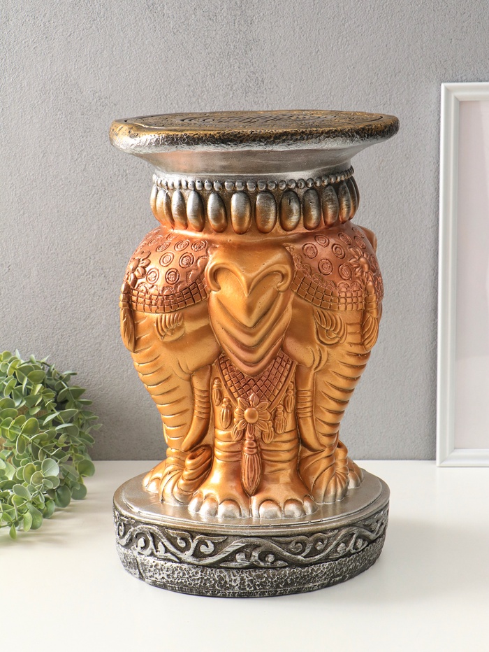 Колонна - тумба "Три слона" чёрный с золотом, 43х27х27 см